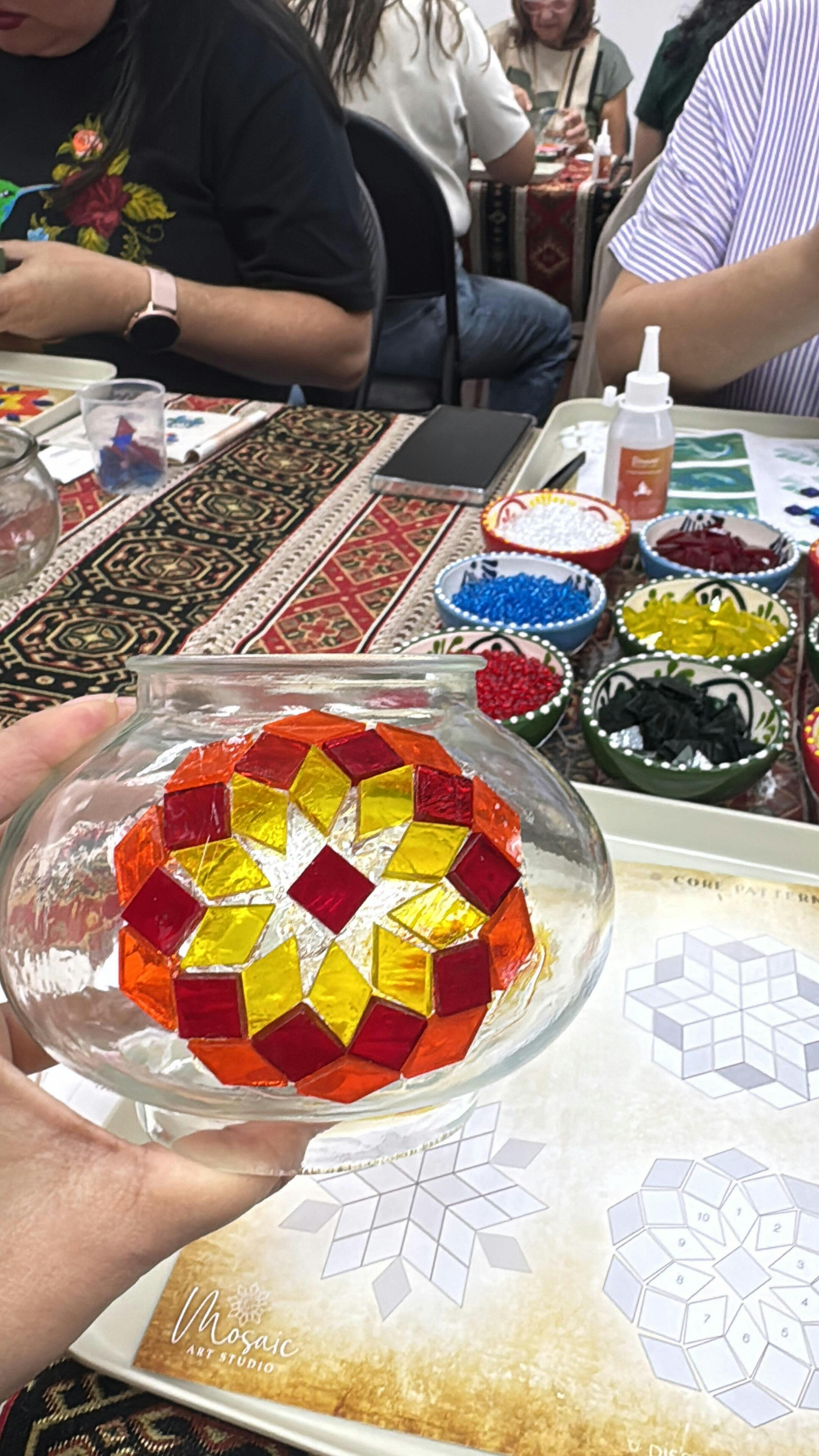 Feel the creative vibe in our workshop with handcrafted lamps and mosaics, guided by expert instructors.